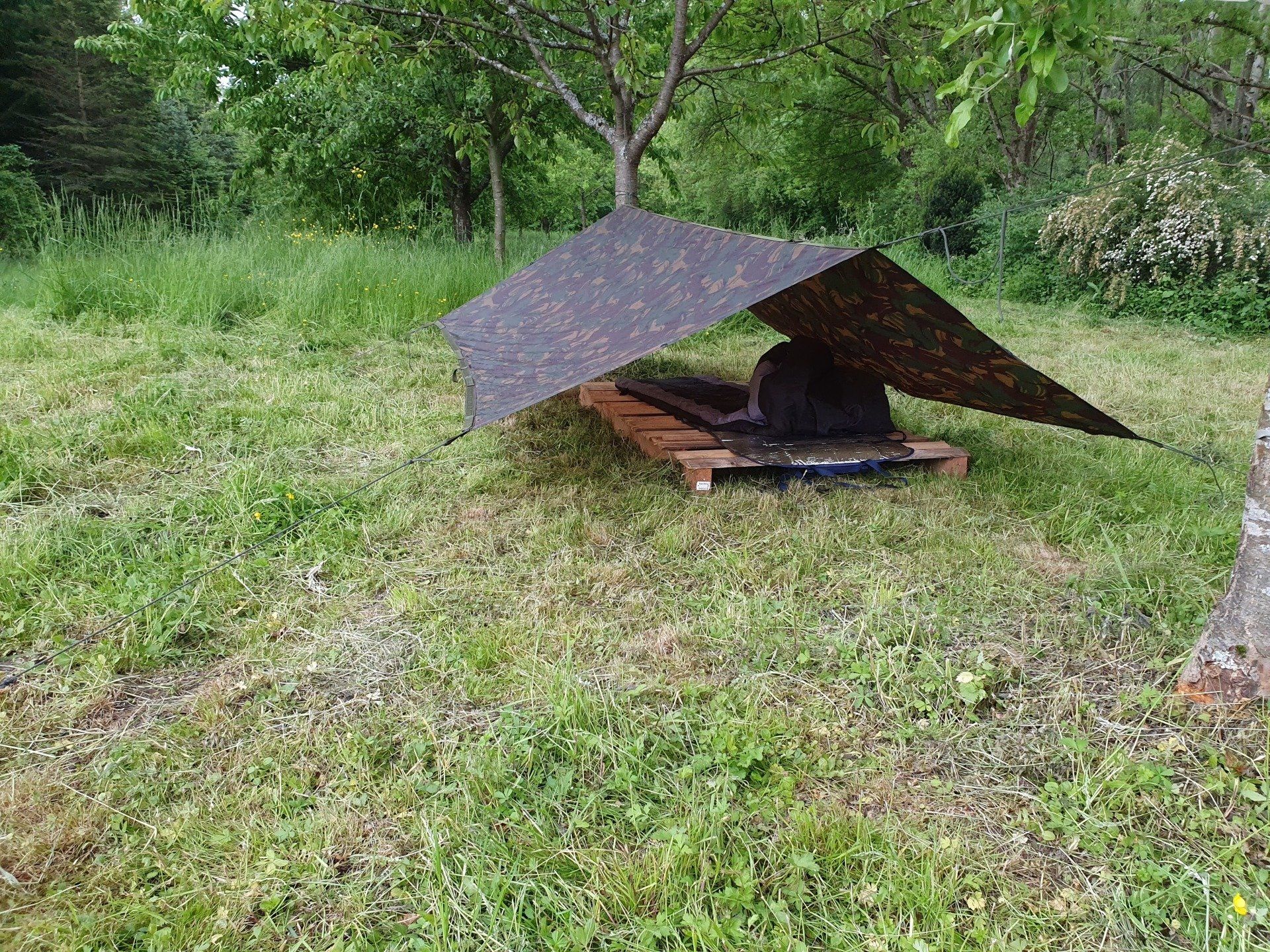 Eine Möglichkeit ist ein Zelt aus Zeltbahnen und einem Windschutz.